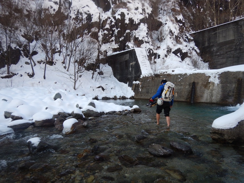 (山宮)2/11(日)~12(月)は会山行で松木沢アイス合宿だったので会メンバー木村さんを誘って2/10(土)に前乗りして松木沢幕岩同志会ルートを登ってきました。前回は偶数ピッチをリードしたので今回は奇数ピッチかな?と思ってましたが木村さんが奇数ピッチをリードするということで今回も偶数ピッチをリードしました。前回の岩が完全ドライな状態と違って今回は岩に雪の付いた状態でした。除雪に時間がかかったり次のホールドやスタンスが雪に隠れて見えないのでグイグイ登れなかったので時間がかかり4P目で登攀終了としました。(時間も時間だし階段状の5~6P目を除雪しながら登るのもその後の幕岩の頭までの歩きを除雪しながら登るのもやらなくていいかなーと思って止めました!)雪の付いた岩壁登攀は最近だらけてる自分の目を覚ましてくれました!今後予定している山行に繋がる山行になって良かったです。反省点としては今回は岩が完全ドライな状態だと思ってナメて2軍のグローブを持ってきましたが1軍グローブも持っていくべきでした。3P目フォロー登攀中に#0.4のカムを回収するのにグローブを付けたままではクラック内に深く入ったトリガーを引けず素手になってなんとか指が入り回収できましたが、一旦脱いだグローブの小指部分がめくれてうまく付け直すことができず他のアイス用グローブを付けて4P目をリードした結果、そのグローブでは凹角内のカチが持てずフッキングした場合も外れそうでリードでは落ちられないので2~3手ですが素手になって登りました。(素手登攀は雪山ではありえないなー)