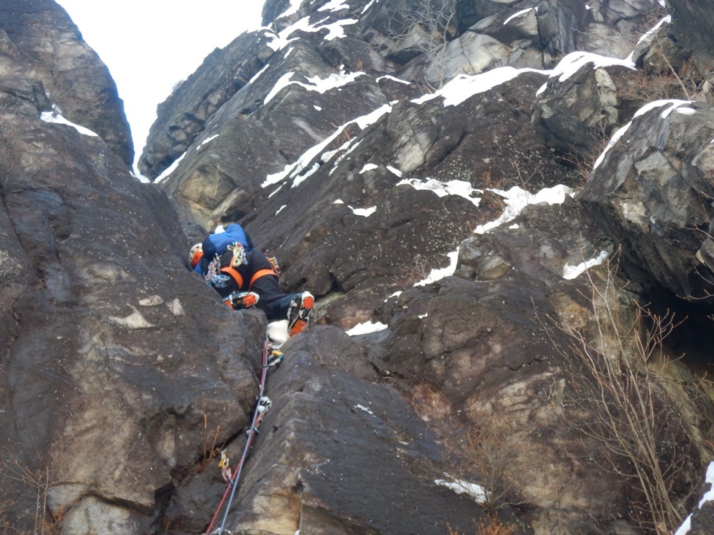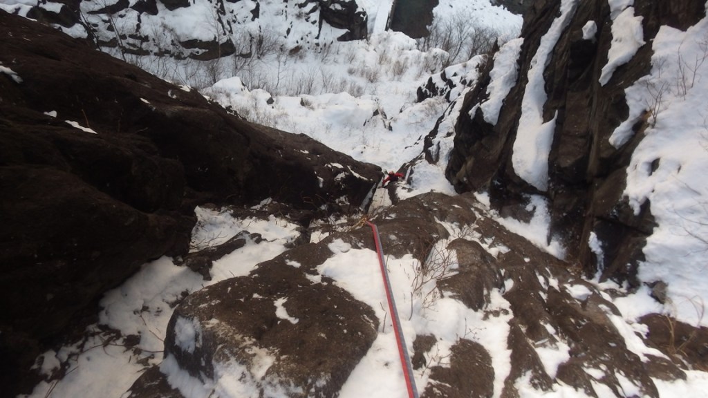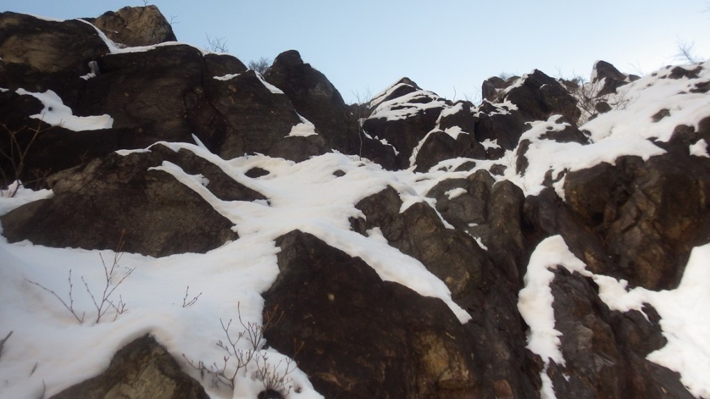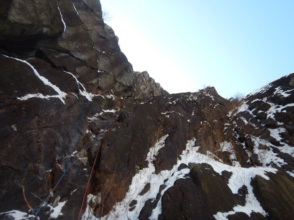 ・傾斜が緩いところは積雪があり除雪しながらの登攀で時間がかかりました。また次のホールドやスタンスが雪に隠れていて分からないのでグイグイ登ることはできませんでした。
