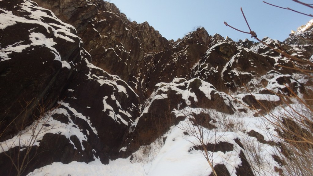 ・前回登った時は岩が堆積する傾斜の緩いところ(というか平らなところ)はガレてましたが今回は積雪がありガレは気にならなかったです。壁の岩は比較的しっかりしています。