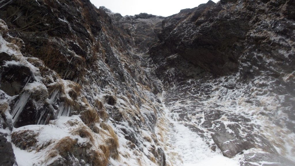 ・草付は中途半端にしか凍ってないところもあり確実に決まりそうなところを探してアックスを打ちました。(アックスが決まっていても、それを信じて荷重するのは少し躊躇しますが・・・要テイスティングです!!)