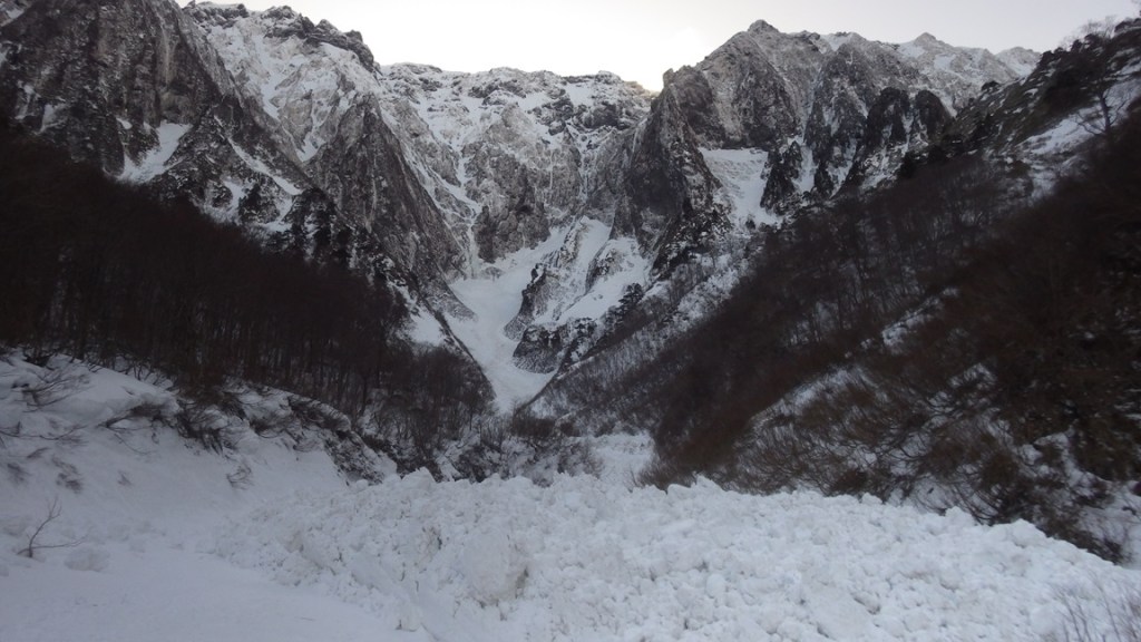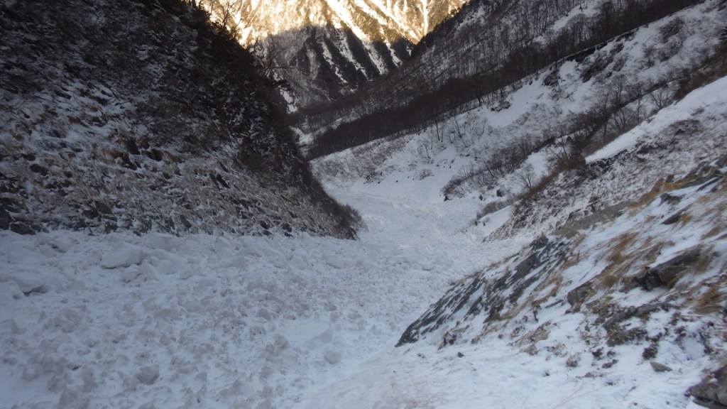 ・デブリだらけの一ノ倉沢のアプローチですが前回2/15の偵察時と違ってデブリはしっかり結合しているし雪も締まっていたので問題なく通過できました。