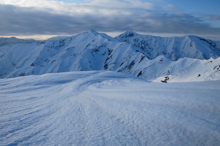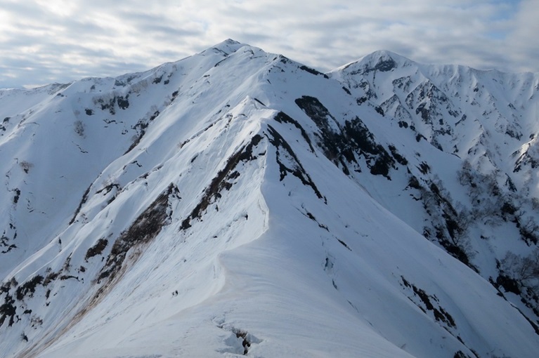 ★感想:念願の上越国境でした。3月の冷え込み、積雪のおかげで真っ白な雪面を歩けました。三ツ石山の先とP1681登りの斜面だけ藪漕ぎで済みました。(同行者いわく、去年の同時期よりネコブー下津川は雪割れしてなく量もあった。)今回は下津川先の際どい所だけアイゼンに換装してあとはほぼスノーシューで通しました。山の上も春の陽気になってますが、一旦ガスに包まれ風が吹けば体感は一気にマイナスになります。昨日は群馬方面から2000mラインに雲が流れてきて暑かったり、寒かったりと忙しい天気でした。今回の山行を通して来年は下津川から越後駒ヶ岳に抜ける目標ができました。