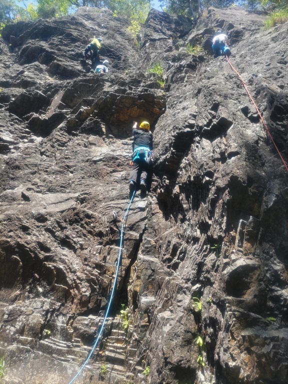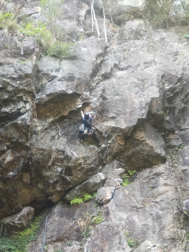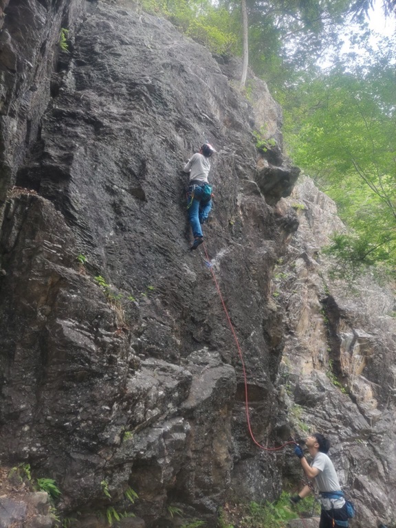 (大久保)1.アップで佐藤さんと2ピッチのルートを登ろうということで私が先に1P目をリードで登りました。1P目終了点でセカンドビレイの準備をしてロックがかかるかの確認をぜずに登っていいと合図をしてしまいましたが、ロープのどちら側もビレイ器をスルスルと動くことにフォローが登り始めたときに気づきセットが間違っていることに気づきました。フォローの佐藤さんに1ピン目でセルフを取ってもらいセカンドビレイのセットを修正できましたが肝を冷やしました。