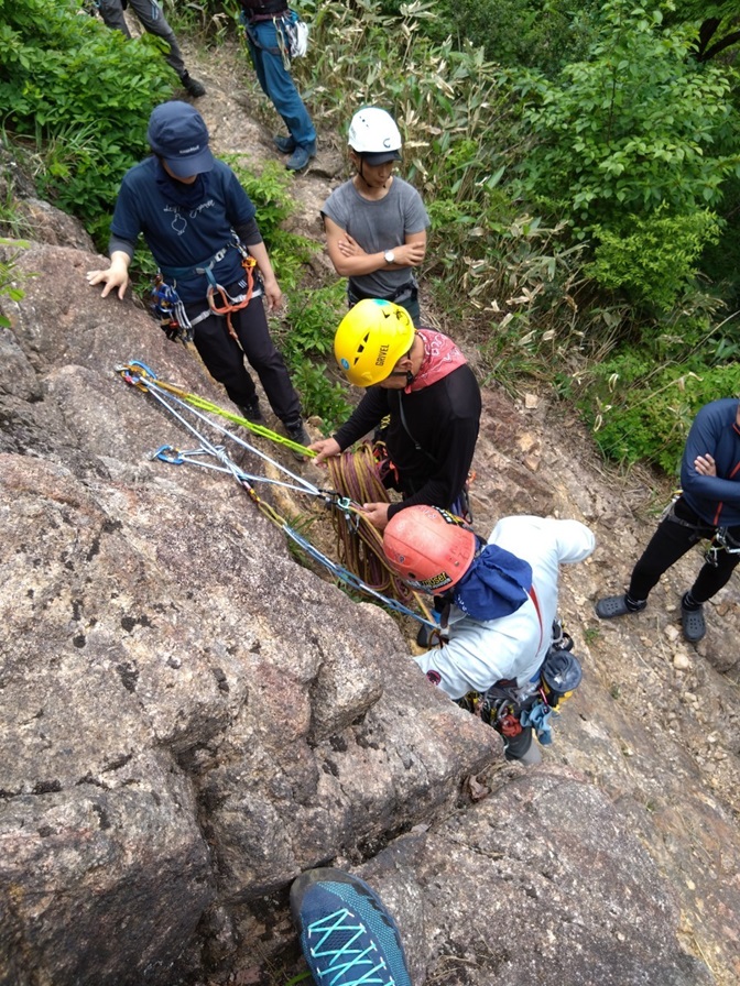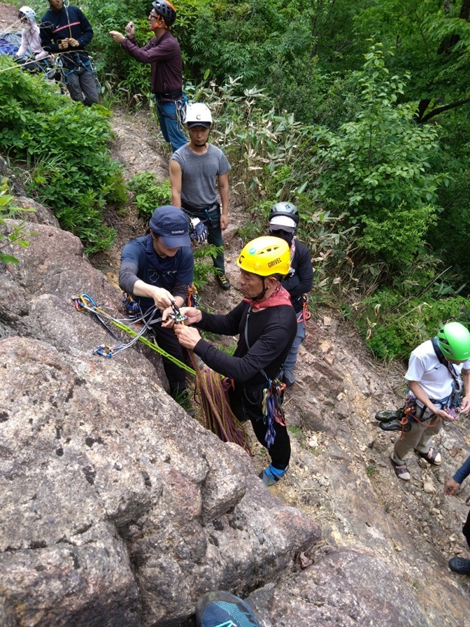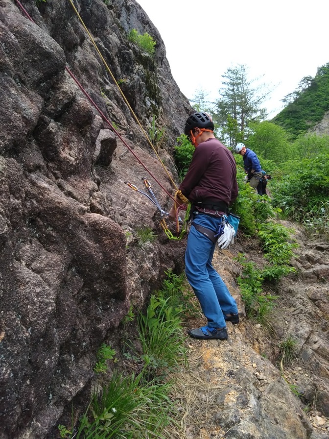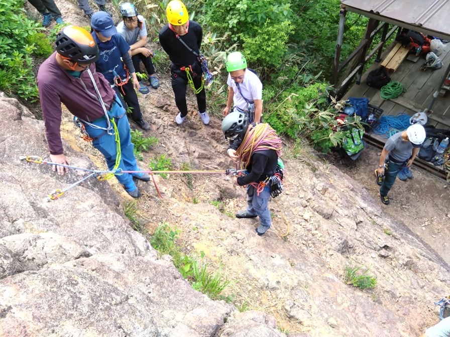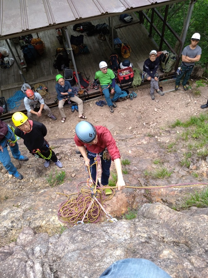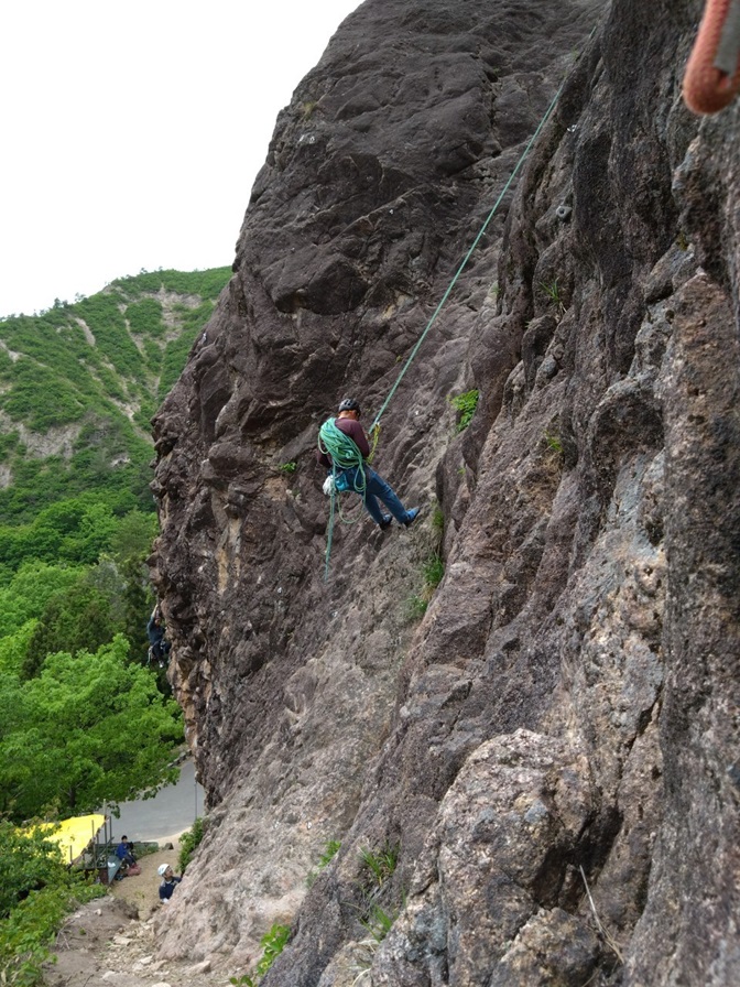 (石附)繰り出し式の懸垂下降の方法は昨年覚えたと思ったが忘れていた。山に登っていないと忘れてしまう。