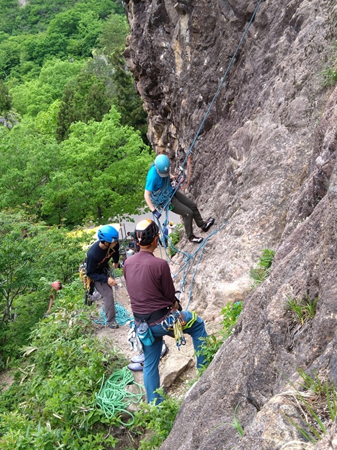 (萩野)初めての岩場でのクライミング、普段感じないほどの強い緊張感がありましたが、魅力を感じ取ることができました。未経験で知識も経験もない中、色々とサポートいただき本当にありがとうございました。これから経験を積み、知識、技術を向上しながら行ける場所を広げて行きたいと思います。