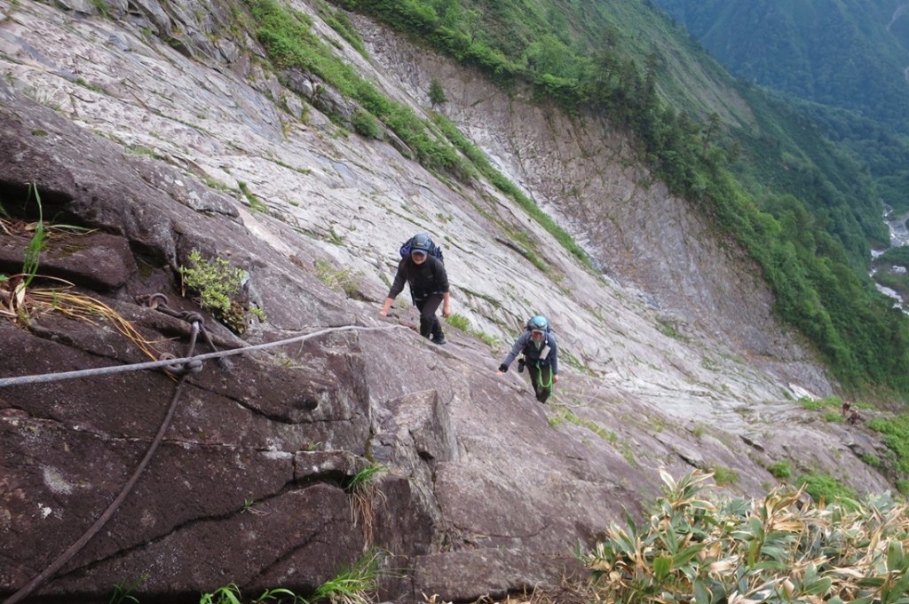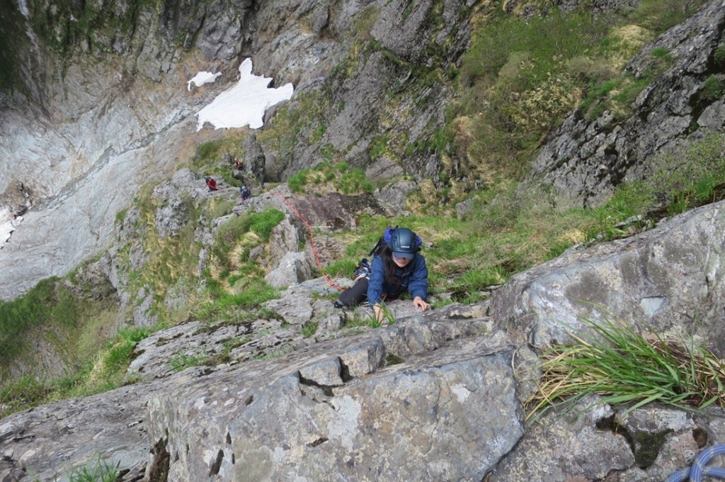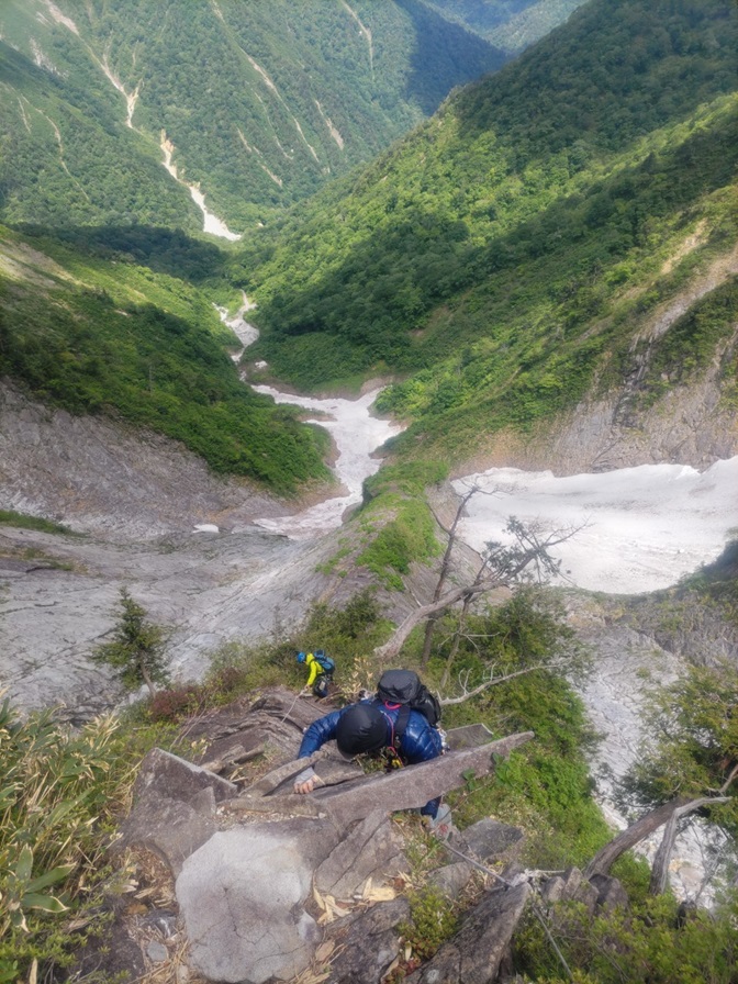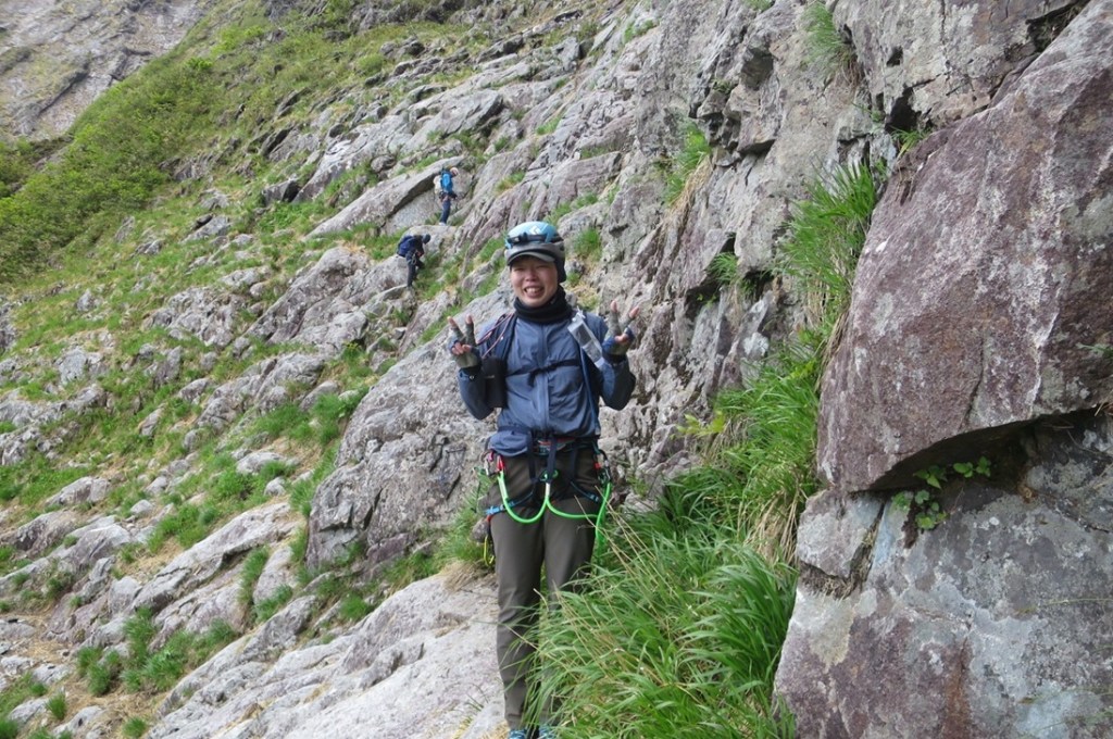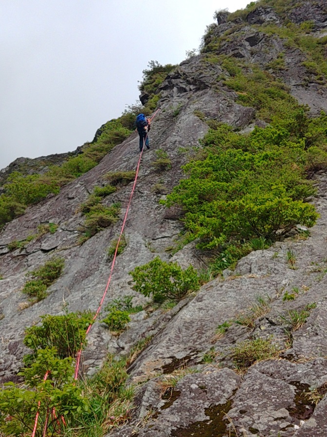 (坂井)取り付きまでで既にだいぶ楽しかったです。岩以外の歩きは辛かったです。さちこさんとペアだったのですが、最終ピッチで10メートルほど落下させてしまいました。幸い怪我はなかったそうですが、重大事故になりかねないビレイでした。反省点①指先部分の無いビレイグローブを使用していたため、熱くてロープを一度離してしまった。指あり買います。②登る人の姿が見えていたのにロープを出し過ぎていました。核心なので特に気を張るべきでした。その他終了点の長さや懸垂後の手順など指摘していただいた部分は次回以降に生かしたいです(希望)。振り返れば常に絶景で感動しました。達成感と楽しさがすごかったです。帰りのご飯もおいしかったので、谷川とともにまた行きたいです。