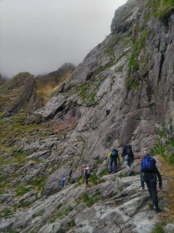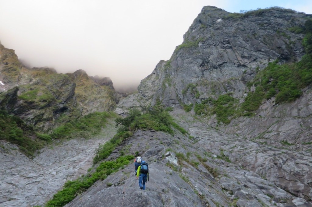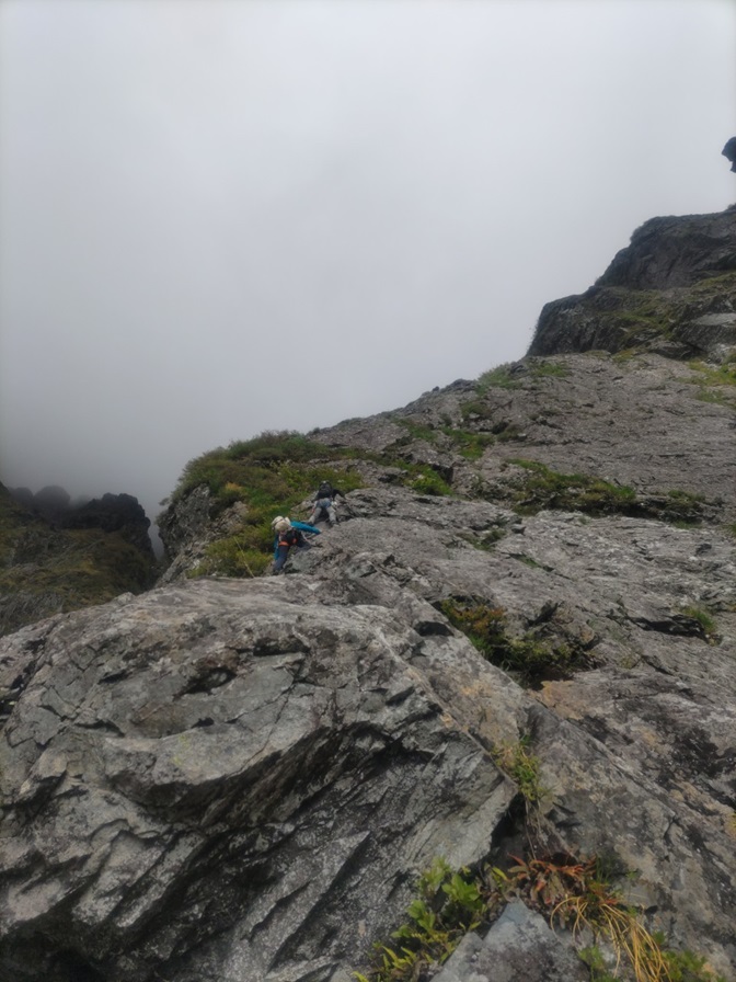 (山宮)今年も山岳会山行で一ノ倉沢へアルパインクライミングに行ってきました。今回は当初予定ではリーダーの石附さんしか一ノ倉沢の経験者がいなかったので下降も含めてルーファイミスをしないよう私も参加しました。前日の夜、谷川岳インフォメーションセンター駐車場は雨が降っていたそうですがテールリッジから南稜テラスまでのアプローチも南稜ルートも岩が乾いていてベストコンディションで登攀できました(6P目の垂壁の最後の方は少し濡れてましたが登攀に問題はなかったです。)が、ほぼ終日風が強く寒かったです。一の倉沢には何度も来てますがこんなに寒かったのは初めてな気がします。この日の南稜は大盛況でしたが渋滞時間切れ敗退するパーティーはいなかったのでどのパーティーもそれなりのスピードで登れてたのかなー?(個人的な主観ですがそこまで早く登っている感じではなかったです。)
