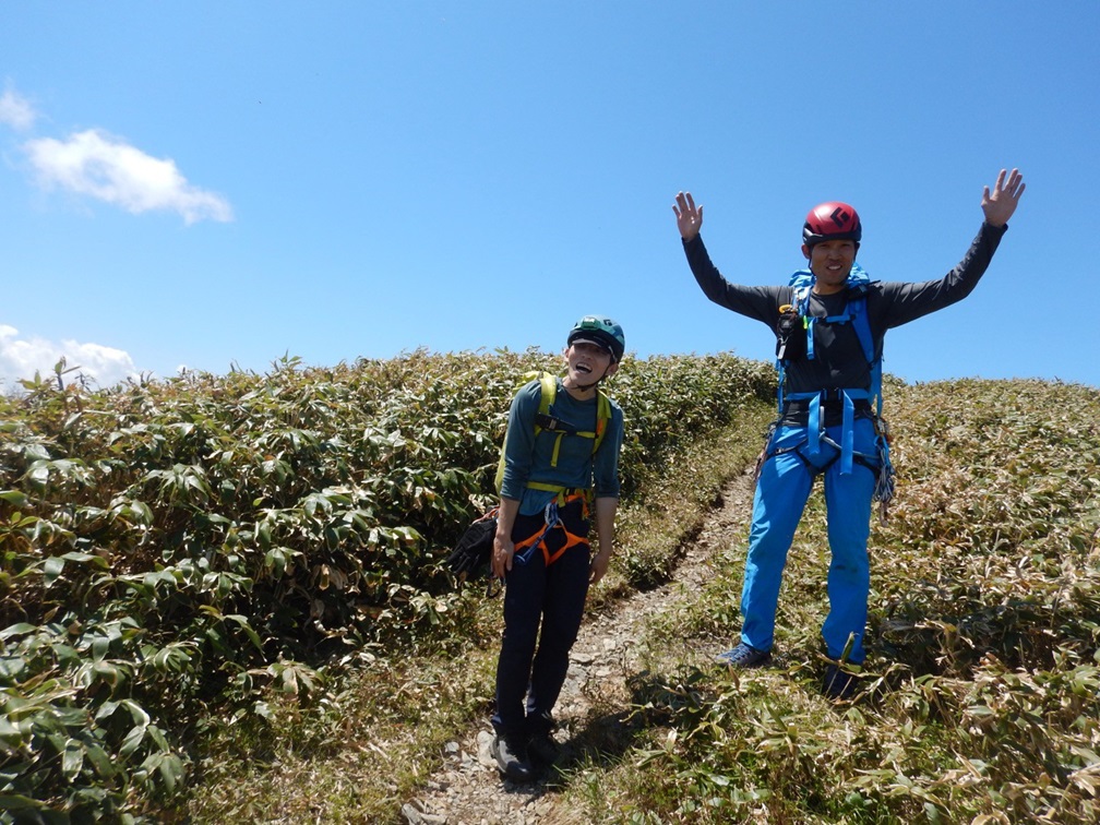(木村)憧れのクラシックルートを完登することが出来ました。今でも充実感がこみ上げて来ます。前日の雨で濡れているピッチも有りましたが、それも含みで谷川らしいクライミングを堪能しました。国境稜線まで抜けると快晴のもと気持ちの良い稜線歩きが待っていました。アルパインクライミングの王道を行くようなピークを踏んでの下山に登攀の完成度が高まります。今回、共に登ってくれたパーティーメンバーに感謝します。反省点としては、岩が濡れている部分では不安を感じA0を多用しました。次回はフリーに拘って登りたいと思います。最後に湯テルメ谷川からの水上ホルモン亭も良かったです。