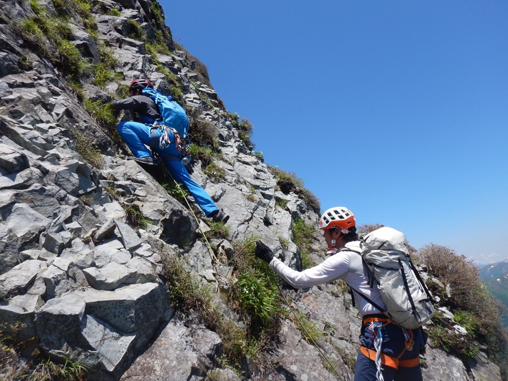 ②岸畑、荒木(つるべ。岸畑は1・5Pをリードで5P目は短く切る。荒木は2・4・6・7Pをリード。3P目はコンテ)