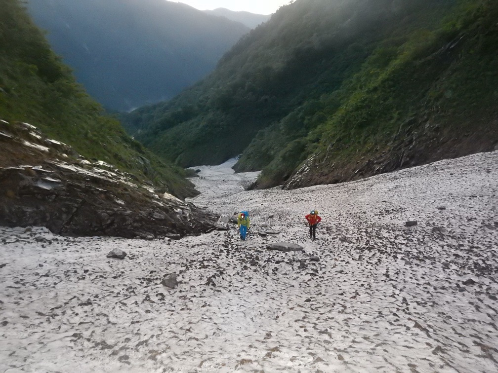 ・雪渓歩きに慣れてない人はチェーンスパイク等があると安心だと思います。