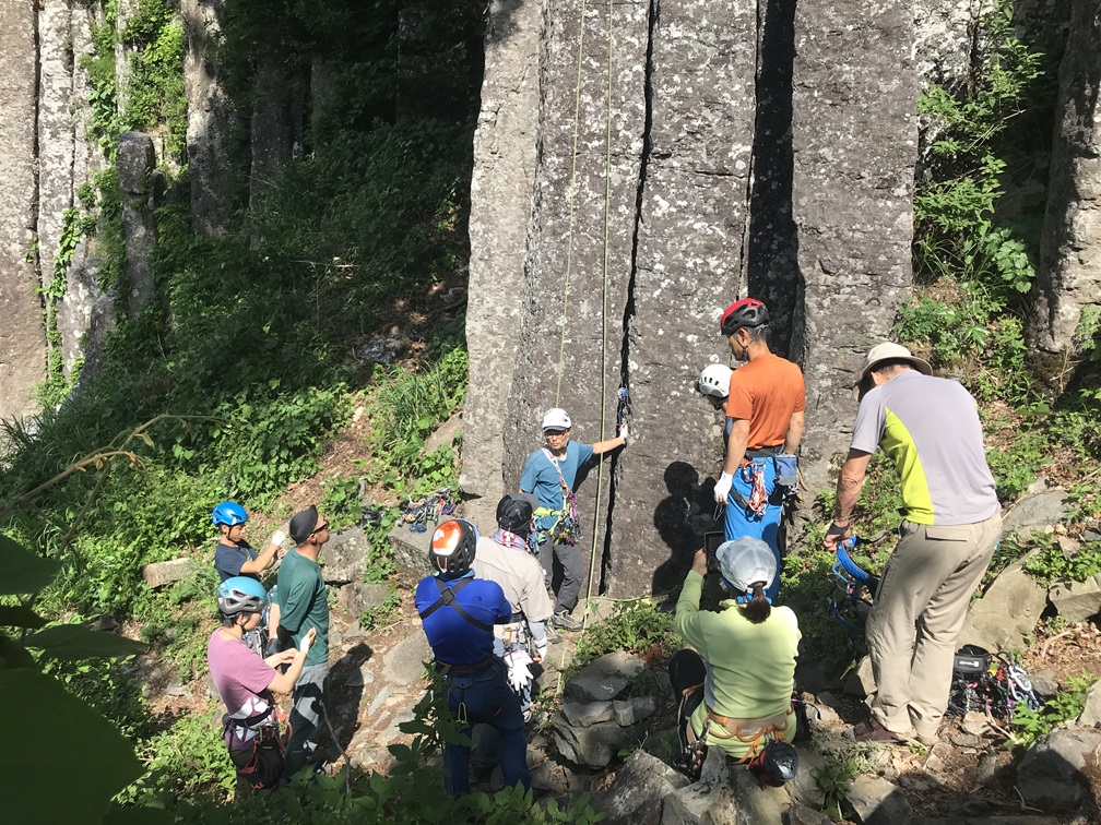 (吉川)13名が参加し大変活発な山行になりました。布岩は新しいルートが増えていてかなり魅力が倍増していました。特にこれまでなかったフィストサイズのゴタイゴ峠や練習岩の大木の間を抜ける「欅」、佐藤くんの「タコライス」は三つ星ルートでした。開拓者の武藤さんも来ており開拓の経緯や熱い想いを伺うことができました。ただ新ルートは岩がまだ安定してない所もあるのでクライマー、ビレイヤーはもちろん、休憩場所も常に落石に注意が必要です。