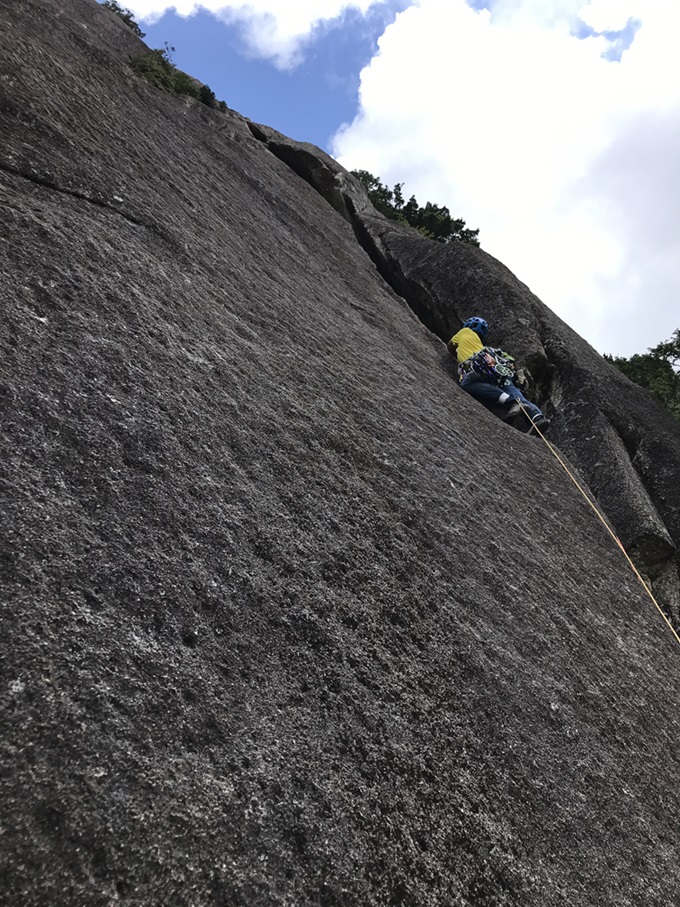 (佐藤)5.10a 5pを登りました。クラック、スラブ、最後ワイドと万人にお勧めしたい面白いルートでした。