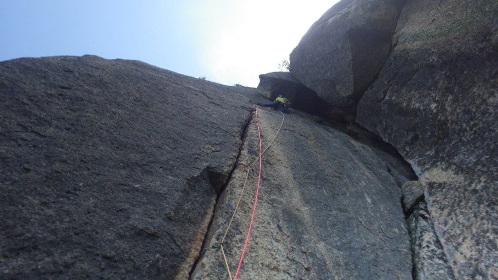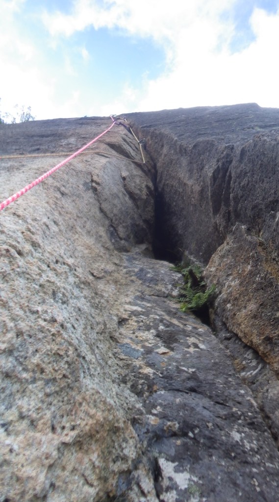 ・出だしの灌木からフィンガークラック基部まで右下がりのトラバースが若干悪い。オーバーグレードのフィンガークラックは最初から諦めてA1で登る。