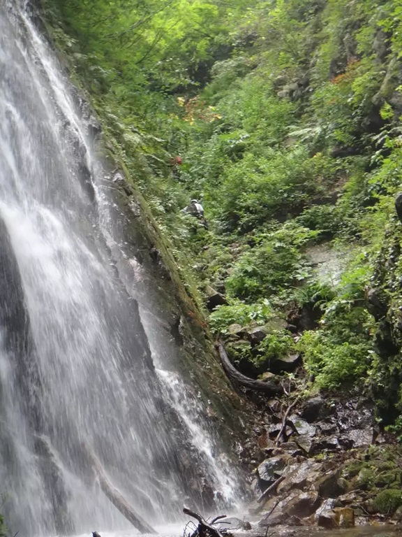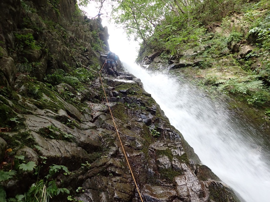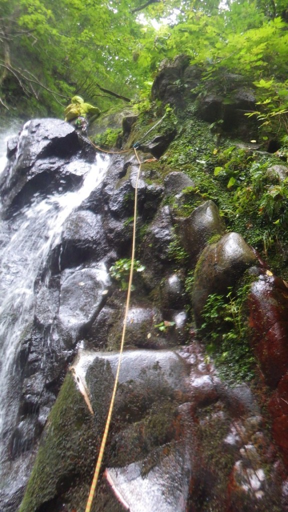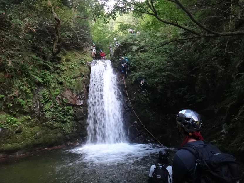 ・2段10m滝と前衛滝と三十三間滝の3箇所でロープを使って登攀。