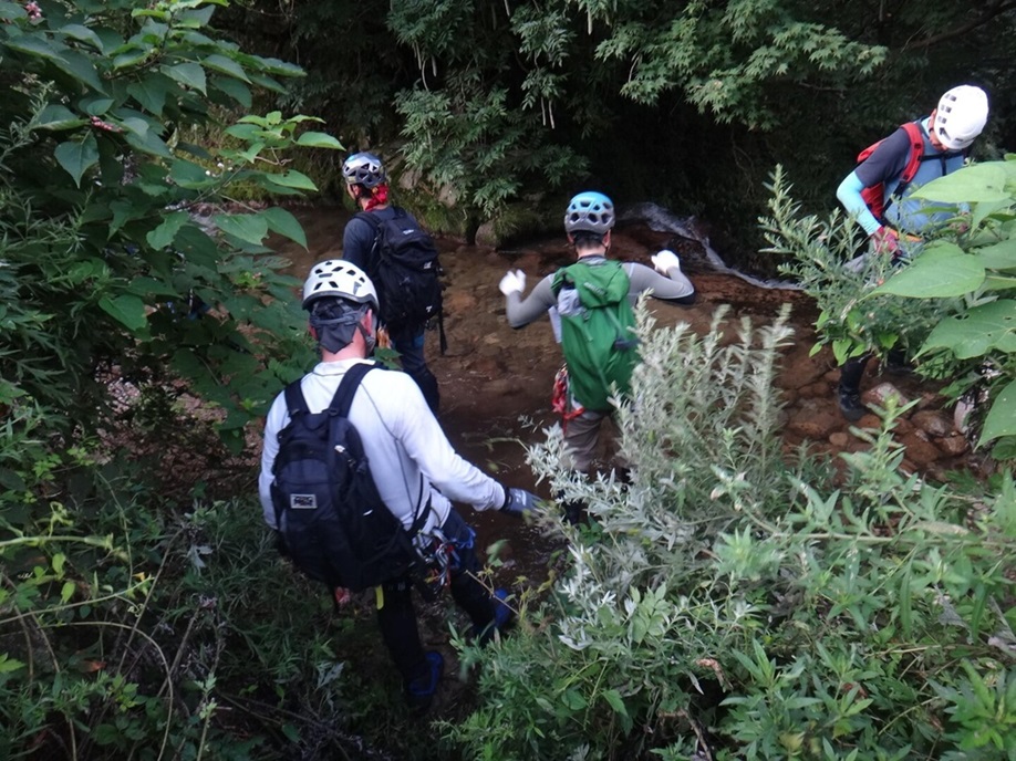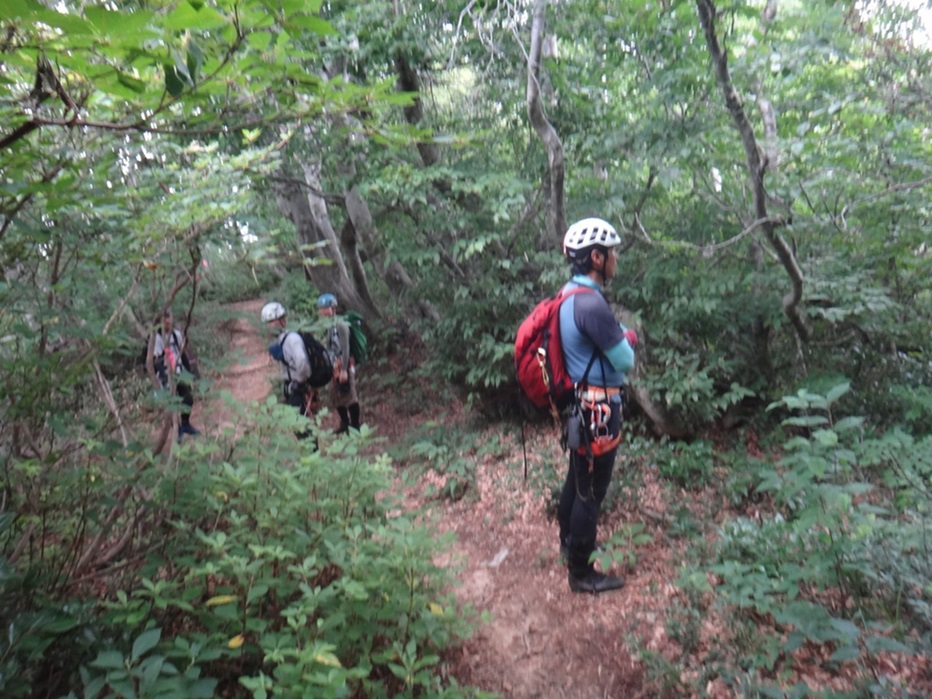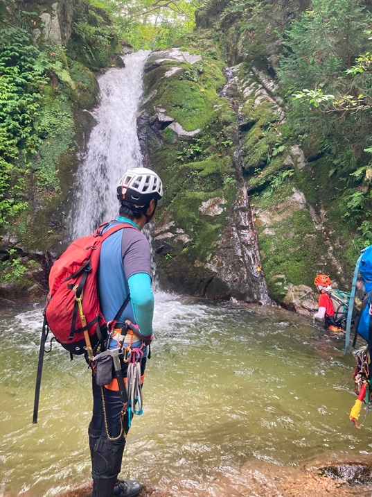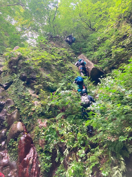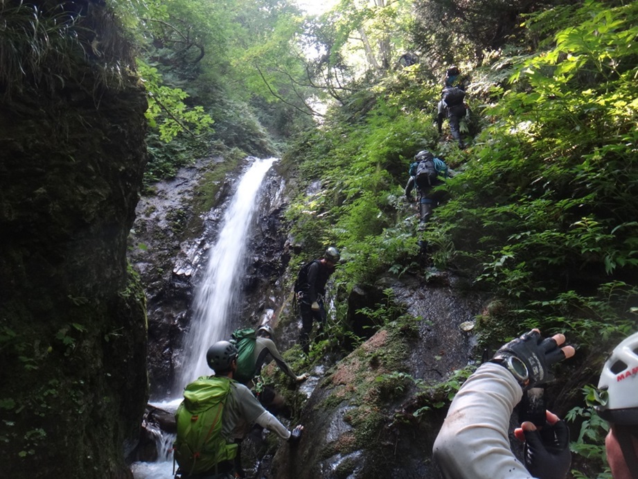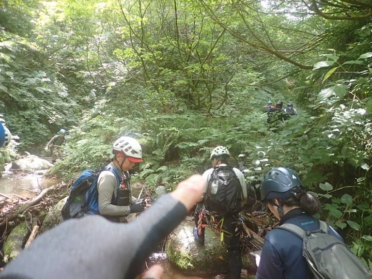 (廣澤)今回の目標の「落ちない」を達成することができました。しかし、なんともないところで転び、膝を打ってしまったことが残念でした。気をつけて歩きます。また、沢登りの高巻きは、スリル満天でした。沢登りでは、いつもリードしてもらってばかりなので、リードできるようにレベルアップしたいです!今回もありがとうございました。