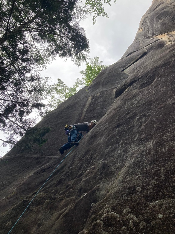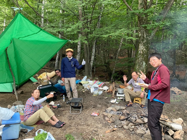 (荒木)13日はクジラ岩付近の5~6級課題を回った後「小川山レイバック」をトップロープで登りました。翌14日の烏帽子岩左岩綾はNPや灌木を利用して支点や終了点を構成する場面が多くまた全18ピッチという長さも相まってグレードより難しく感じました。最後のピッチは雷雨のため敗退しましたがこのピッチがまさにルートの核心ということもあり次回こそは登りきりたいと思います。反省点は多くありますが特にアプローチのルーファイが完全に人任せとなってしまったことは大きな反省点だと感じました。最後に13日のBBQ14日の羽田さんの料理大変美味しかったです。ありがとうございました!
