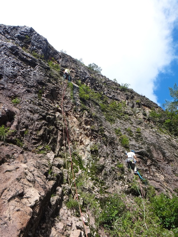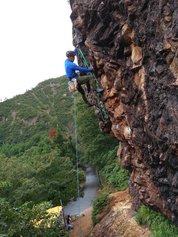 (羽田)久しぶりにやって、道具を使うのは楽しいな~。身体で覚えてるから、忘れてないんだなぁ~って思いました。左岸稜のリードを、楽しくスイスイと登る為に杉滝アブミルートを何回も繰り返し練習しました。Zになったり、アブミと岩の間にロープが挟まったり、ハーネス回りをすきっりさせないと、ひっかかったり、ゲレンデの練習で、自分が完璧に行けると自信を持ち、左岸稜に行って、もう終わったんだ~と思う位、サクサク、楽しく行きました。本番で、モサモサしてたら もっと練習してから来てよ~と思います。貸切なら、いいですが、マルチピッチは時間の概念を頭に入れて、ギアの回収、セット、全てをしっかりゲレンデで練習してアルパインやマルチピッチの本番を楽しみめると思い、なかなか上達しないクライミングを修行中です。