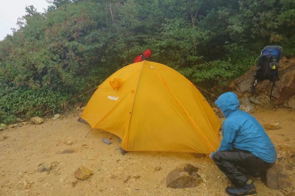(土田貴)盆後半に流れた八ッ峰の代案で槍ヶ岳北鎌尾根へ行ってきました。結果から言うと敗退です。土、月曜日の天気が良く肝心のアタック中日の天気予報が微妙で決行するか悩ましい所でしたが好転に期待して決行することに。行程はよく記録に上がってる上高地、新穂高から水俣乗越経由ではなく、中房温泉から貧乏沢下降で北鎌沢出合です。初日は快晴で最高のアルプス日和でした。ただ9月中旬とは思えぬ暑さ。温暖化は深刻です。貧乏沢は想像してたよりガレも優しく際どい所は沢沿いにしっかりした踏み跡の巻き道もついてて歩きやすかったです。天上沢の川でクールダウンし出合テント地では焚き火もしてアタック翌日に備え19:00には就寝しました。2日目は0:30起床、2:00スタートで11:00くらいに槍ヶ岳登頂のはずが、、、天候が悪化し深夜1:00頃から急に雨が降りだしました。北鎌に備え意気揚々と寝起きにカップ麺とおにぎりを食べた直後に降り出したので、真夜中にラーメンを食べ、朝方まで二度寝をするという体にも心にも良くない出来事でした。結局2日目は一日中雨でずぶ濡れになりながら水俣乗越まで登り返し、西岳のテント場へ。(※水俣乗越の登り返し中、間違って一本左の沢へ行ってしまいました。危うく進退極まる所でした。登りながらこんな悪くないよな?って思ってて、少しでも違和感を感じたらGPSでの現在地の確認。反省点となりました)3日目は前日の真っ白な世界が嘘のような快晴スタート。赤岩岳先で染まる槍ヶ岳を眺め、山はやっぱり良いな〜と思うと同時に来年こそはと誓い下山しました。北鎌は行けずでしたが充実した楽しい三日間でした。計画してくださった木村さんに感謝です。