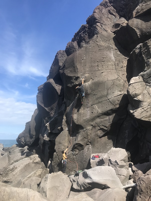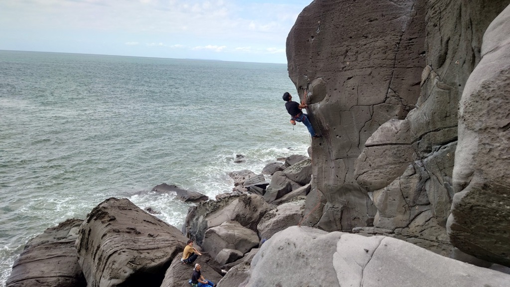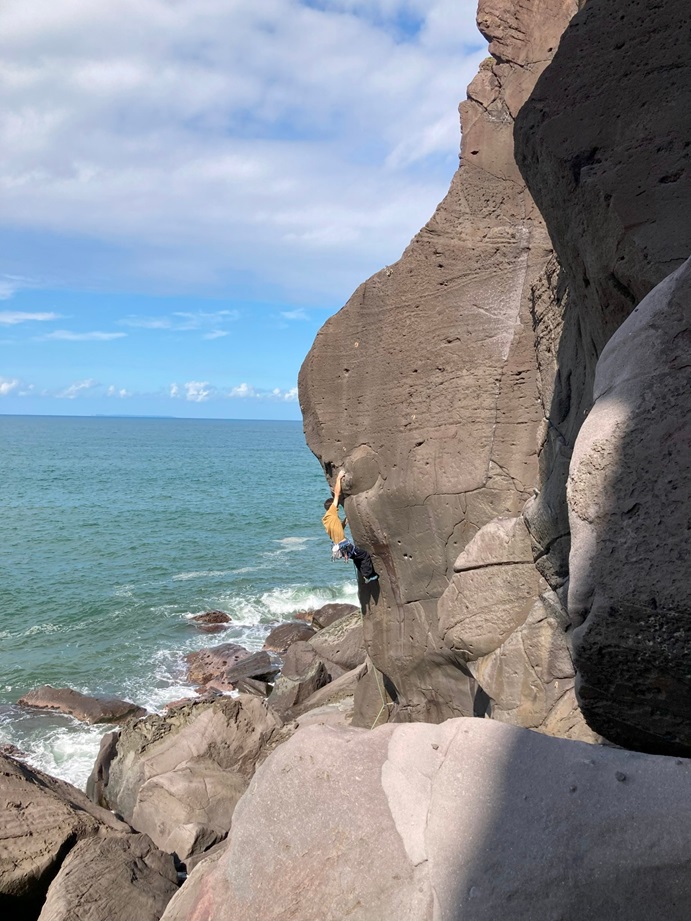 (荒木)お立ち台から取り付く「チョコフレーク(10b)」は、気持ちよく登れてアップに最適だと思いました。前回、前々回で宿題となっていた「蒸しパン(10c/d)」は、核心部のホールド(カチ)を見つけることができ、無事にRPすることができました。次回は「イルカショウ(11a)」や「白鳥(11a)」などのイレブン台を本格的に取り組もうと思います。