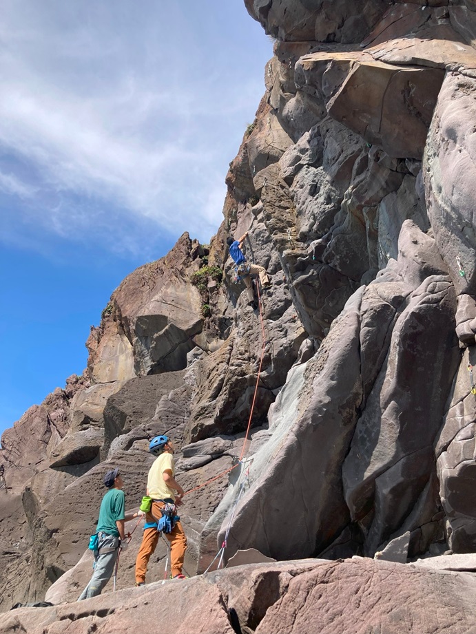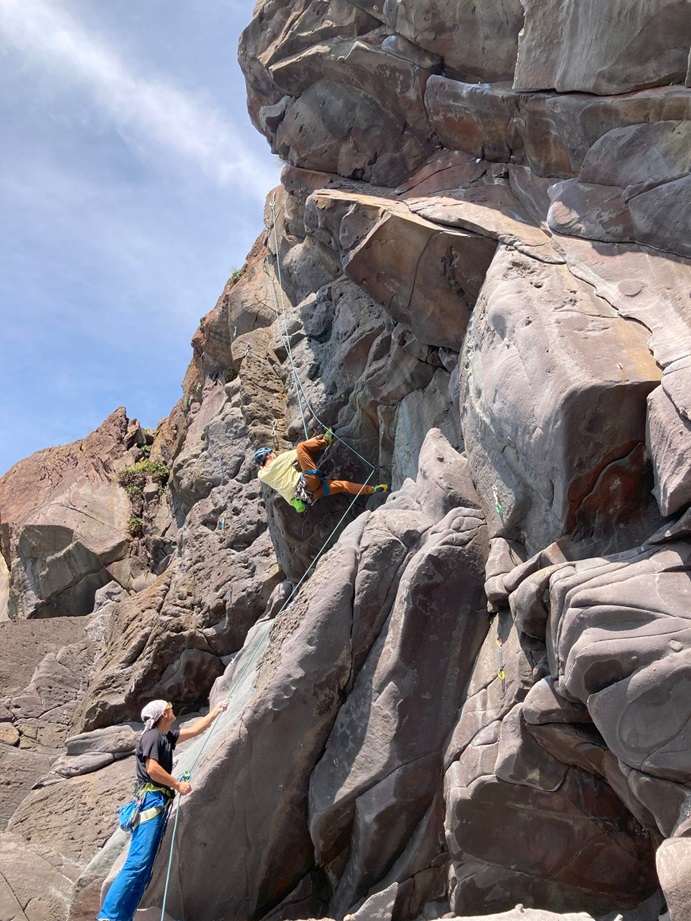 (星野)会山行に初参加、行った場所も初めてで勝手がわからなかったのですが、皆さんにたくさんフォローしていただいて楽しく登ってこれました。外岩ならではの自由さと緊張感が良かったです。今回の経験を普段の練習にも取り入れて、もっと登れるようがんばります。