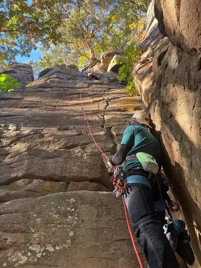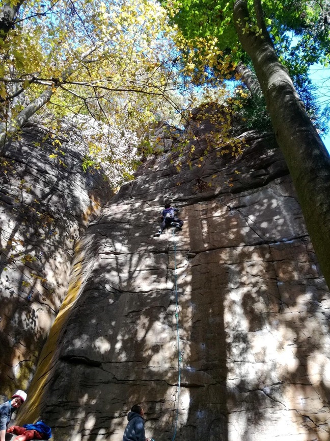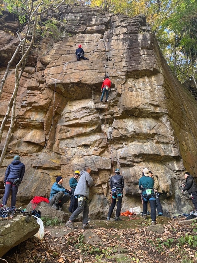 (久保田)高さのある岩に初めはビビってしまいましたが、同じ場所で何度も練習させてもらいなんとか一箇所登ることができました。課題はたくさんありますが、なんとも言えない達成感を味わうことができました。行けるところまでで良いよと言われて、場所を変えて挑戦し途中までですが楽しく登ることもできました。何しろ和気あいあいと雰囲気のなか、楽しく1日過ごせたのがよかつたです。みなさんありがとうございました。