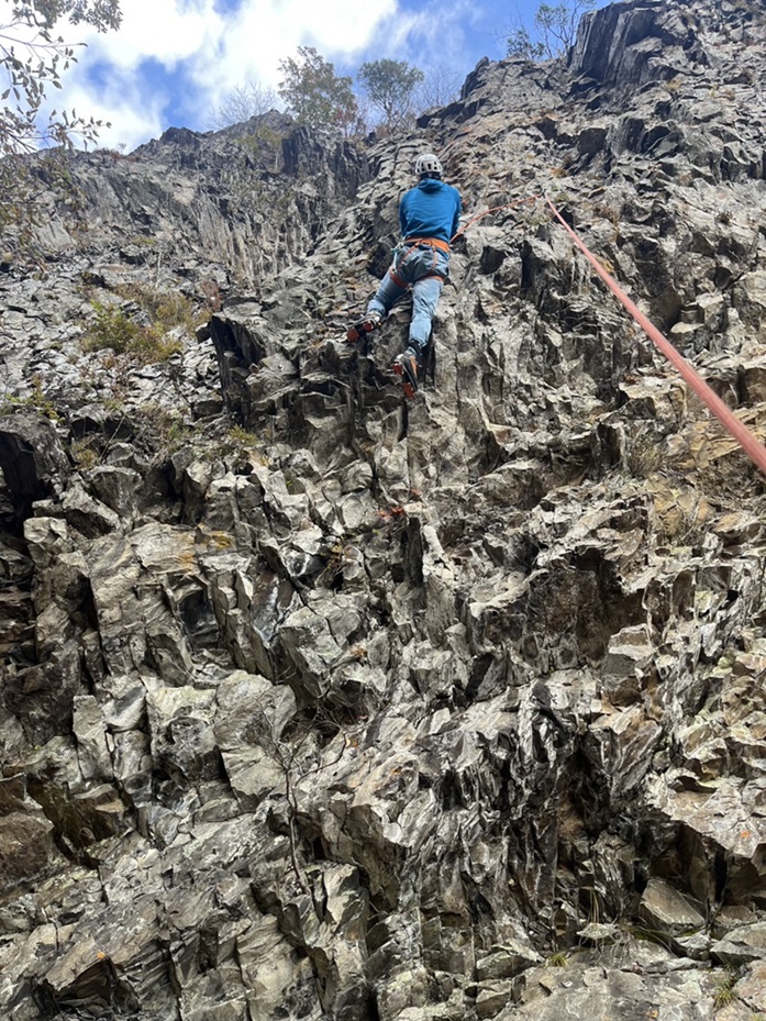 (木村)昨年に引き続きこの時期に冬のMIXルートに備え、鎌倉山ドライツーリングに参加させて貰いました。トップロープでD6とD7を登りました。D6はトップアウト出来ましたが、D7は昨年同様、ハング下を越えられませんでした。シーズン一発目にリードで完登する山宮会長のテクは流石です。会外参加メンバーも強者揃いで刺激を受けました。自宅からもそう遠くないしD6であれば回り込んでTRを掛けられるので時間の空いた日にビレイヤーを見つけてコソ練したいと思います。