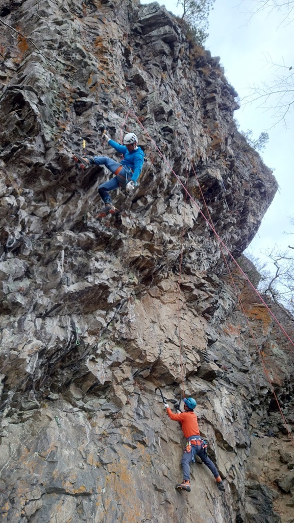 (山宮)12/1は今年3回目の鎌倉山ドラツー。今回鎌倉山お初の佐藤さんがOSトライするのでトップロープ張りは任せた!と思ってましたが、佐藤さんMOSの後に『リードしますよね?』の言葉でついついリードしてしまいD6-とD7をリードで登りました(笑)D8は地元KZさんがリードしてトップロープを張ってくれてましたが佐藤さんOSトライの為ヌンチャクをかけ直すのにトップロープで登りました。下部はノーテンで行けましたが上部ハングで体力が尽きテンテンでトップアウトでした。下部はアルパインぽくて楽しかったです!!(ちなみに佐藤さんはD6-とD7をMOS、D8をOSしてました。D7は上部ハングを左から行かず直登気味に登ってたのは凄かったです!)その後F4F9鎖トレをしてからD7をトップロープで登りましたが思いのほか消耗しててハング越えはテンションしまくりでした。この日はNCCメンバーが6人、茅ヶ崎メンバーが4人、地元メンバーが4人と大賑わいの鎌倉山ドラツーエリアでした!(ほぼ知ってる人でしたw)