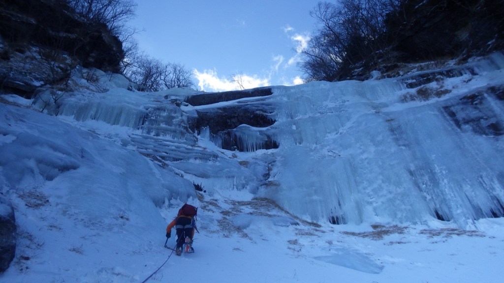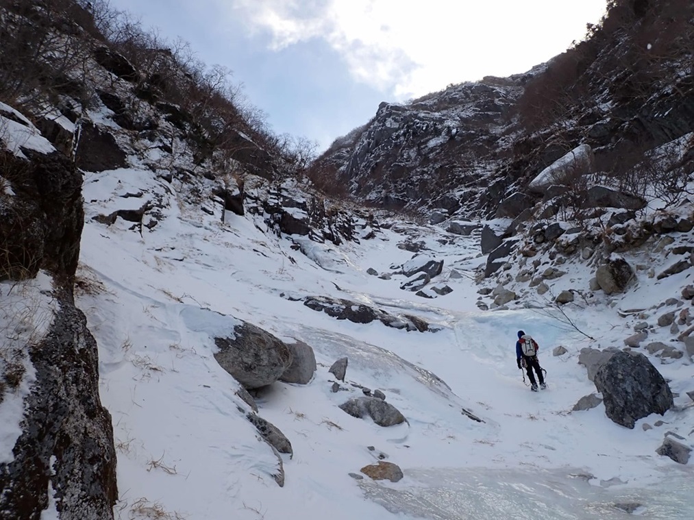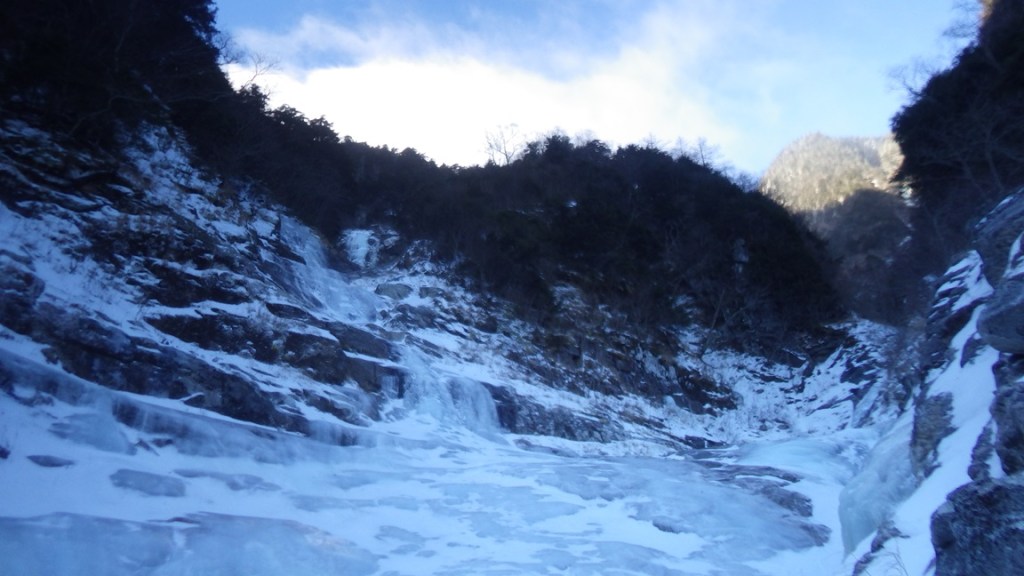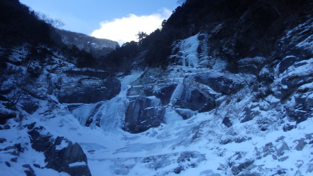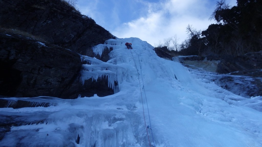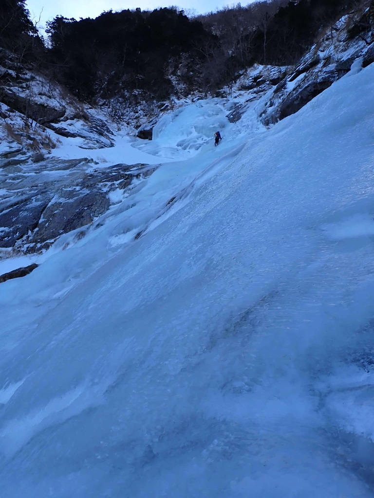 ・ロープは大滝60m(Yさんリード、60m1ピッチでは少し足りず残り少しを山宮が先に登り肩絡みビレイでYさんを確保。)、幅広20m滝(山宮リード、左端の傾斜の緩いところを登る)で出しました。