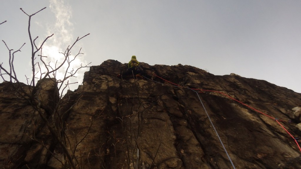 ・残置支点は少ないのでカムやナッツ、灌木等で中間支点を取っていきます。