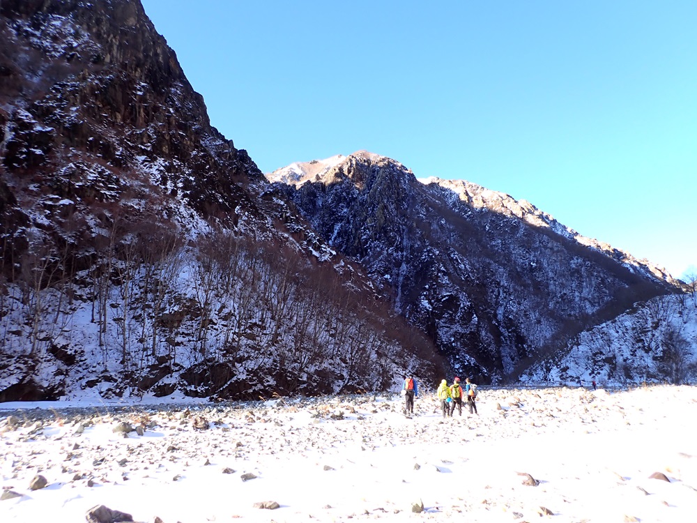 ・松木川は行きは浅いところを強行突破、帰りはアイゼンを付けて飛び石で渡渉しました。(石が凍っていたり濡れていたりすると滑るので注意です!!)
