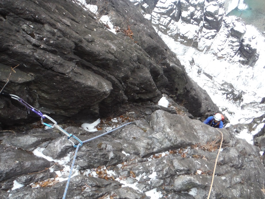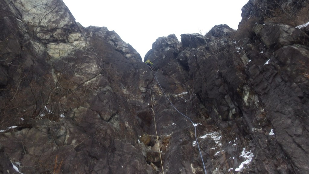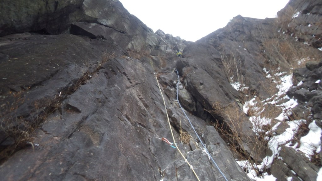 ・基本はカムやナッツ、灌木等で中間支点を取りながらの登りとなります。(残置支点も数個はありますが期待しない方がいいです。)