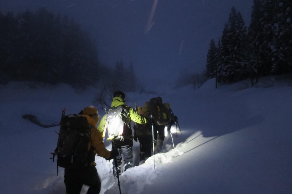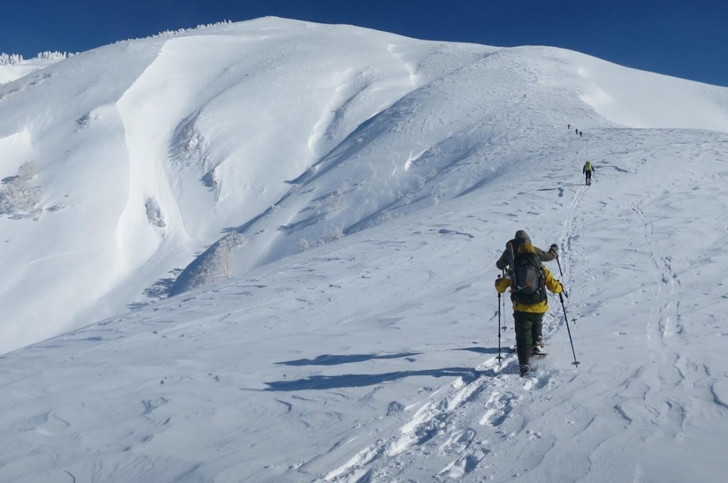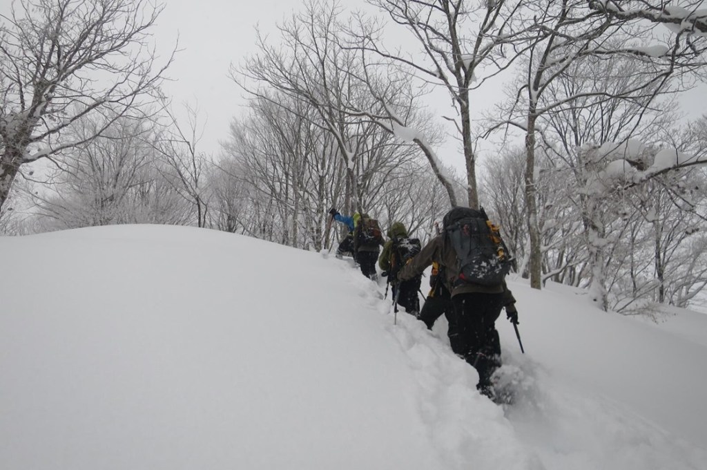 (土田た)冬期の巻機山は毎年行ってますが過去一のラッセル登山でした。雪山はタイミングで難易度が大きく変わるのも面白いです。 我々のラッセル隊+BC4名のおかげで登頂できました。ソロだったら5合目まで辿り着いたか怪しかったかな〜。メンバーに感謝!