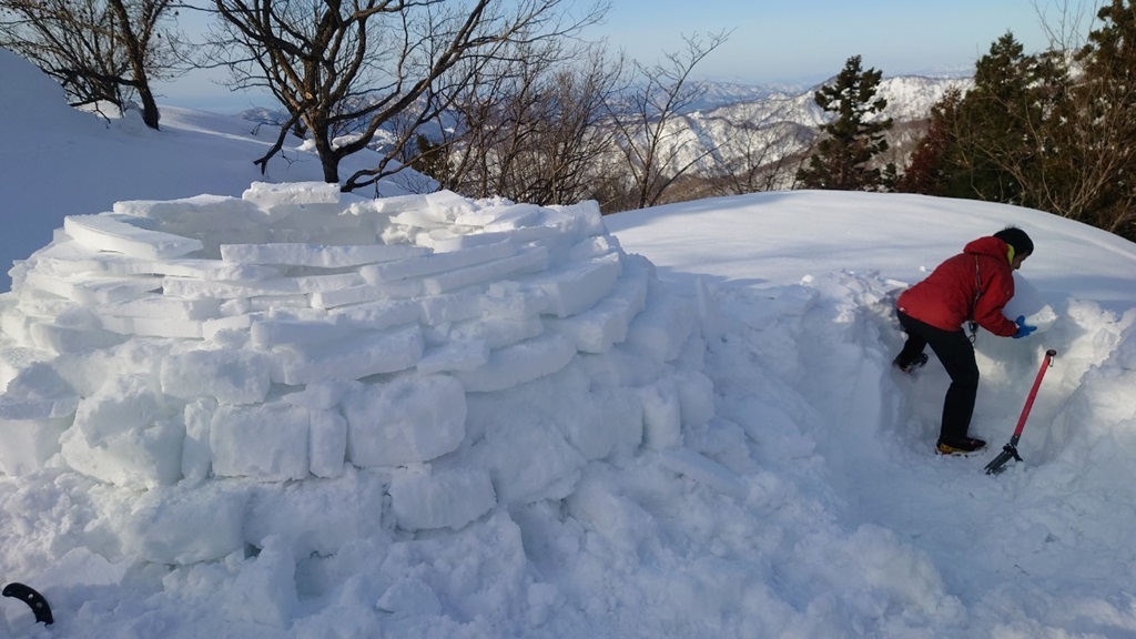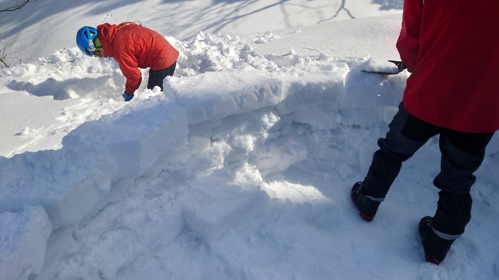 (佐藤ゆ)訓練は大体予定通りこなせた。イグルーは欲張りすぎた。プロじゃないと無理でした。夜は雪洞を掘って朝まで寝た。知り合いからもらったエアマットはすぐにぺちゃんこになり使えないことがわかって良かった。埋没体験では、たったの30cmほどで身動きが取れなくなることを再確認できた。