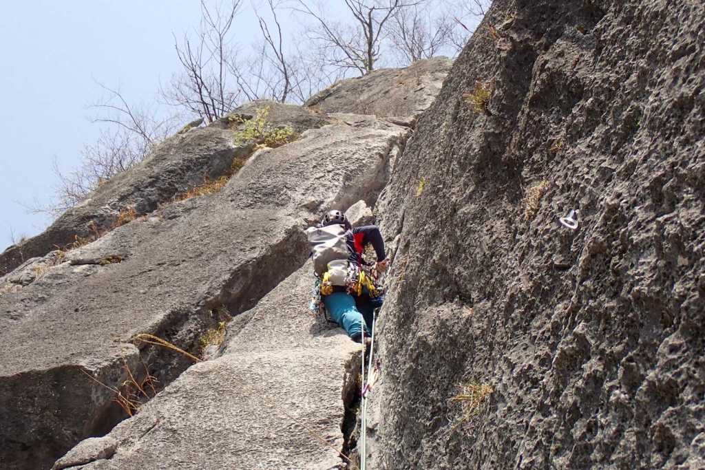 (土田た)今回のリードはスーパーたこやん1ピッチ目5.8。中央陵1ピッチ目5.6、5ピッチ目5.7、6ピッチ目5.6。たこやん、中央陵は全体的にガバホールドを持って細かいスタンスに立ち込んで登っていく感じでした。核心ピッチは木村さんにお願いしました。フォローで登ってみてリードは厳しそうだな〜って思ったパートも多々ありました。中央稜の核心コーナークラックの抜け口が悪く思わずヌンチャクA0でした。