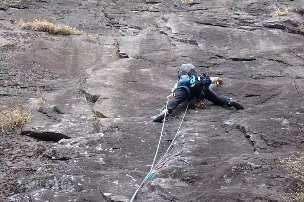 (廣澤)1.2.4ピッチをリードしました。1日目よりもクライミングが難しく、しびれました。4ピッチ目のリードで、ビビり散らかして無念のA0でした。まだまだ修行が足りません。2日間を通して、木村さんと貴さんには、大変お世話になりました。お二人には、たくさん教えていただきました。またよろしくお願いします!マルチに行くにあたって心配だった高度感は、意外と平気でした。今後も、簡単なルートからはじめて、いろいろなルートに行ってみたいと思いました。私は、ロープワークも登りも遅すぎたので、どちらももう少し早くできるように練習します。