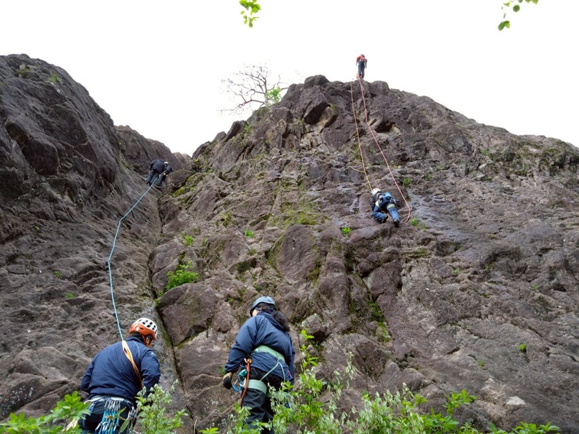 (中山)天気が悪い中、講習会の準備やご指導ありがとうございました。ロープの結び方や登って、懸垂下降で降りてくる一通りの手順や流れは繰り返しやらないと忘れてしまうので、とりあえず毎日ロープに触り結び方の練習をしていきたいです。また、近くの山の斜面とかで登って、降りる一通りの手順を復習します。休みの予定が合えば、他の方々と外岩でのクライミング練習等もしていきたいと思ってます。