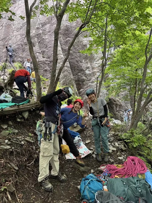 (土田た)初黒岩でした。黒岩は私のような初級者でも取り組みやすい課題が多く楽しかったです。今回は計10本登りました。印象に残った一本は【ヤンキーボーイ10a】のオンサイト。百岩のトポには載ってなく近年整備されたルートです。地元の方に教えてもらいました。【ヤンキー娘】の隣のルートになります。黒岩は地元の方々に親しまれてる岩場なので週末は混雑してます。今回は現地駐車場8:30でラスト1.2台でした。最後に私のやらかしを皆様に報告します。アルパインルートの西陵を登っての出来事です。カラビナが半開きでした。(後日岸畑さんが写真を見て気付きました)行の方のヌンチャクをお借りして登ったのですが、支点側を確認せず流れ作業でロープクリップした結果です。少し慣れた頃に事件は起こる。クライミングはワンミスで重大事故に繋がる競技なことを再度認識し、これからは一層安全確認クライミングに努めたいと思います。