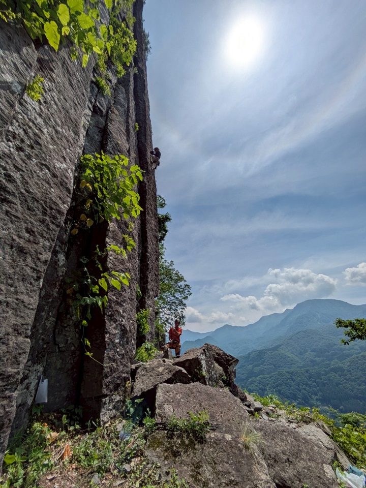 (土田た)今回2回目のクラッククライミングでした。昨年は1日参加でしたが泊まりこみで2日間集中合宿に参加できて良かったです。クライミングの充実度、満足感、疲労感がまるで違います。クライミングに関しての改善点も多々発見できました。特に手ジャムで力み過ぎ。クラック空間でサイズに合ってないジャム手を無理矢理に必要以上に筋肉と骨を膨らませた場面が多かったです。(今も手のダメージが凄いです)クラックの経験を積んで手ジャムの引き出しや力まないサイズ感の見極めを習得していきたいです。それと擬似リード時カムにつけるカラビナも大事だと再確認。冬と違って素手だしBDの極小ビナでもいいだろって思ってましたが、、1秒を争う状況ではロープクリップがけっこうなストレスでした。(ロープクリップが下手な自分としては)クラックはなかなか安全にできる機会が少ないので、毎年企画してくださる吉川さんには感謝です。いつも美味しい食事を用意してくれる羽田さんもありがとうございました!来年は清流ガンジス川でスイカを冷やしておいてスイカ割りしたいです