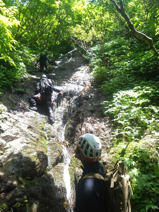 (廣澤)愛する五頭山の沢に登ることができて嬉しかったです。ずっとリードをしてくれた佐藤くんは流石でした。リードをしないと自分で登ったとは言えないなぁと、沢に行くたびに思います。リーダーのまりこさんには、何から何までお世話になりました。ありがとうございました!今回は、行動食がウィダー2つと少なく、中盤からかなりバテてしまいました。少し多めに持っていかなくてはいけないと実感しました。