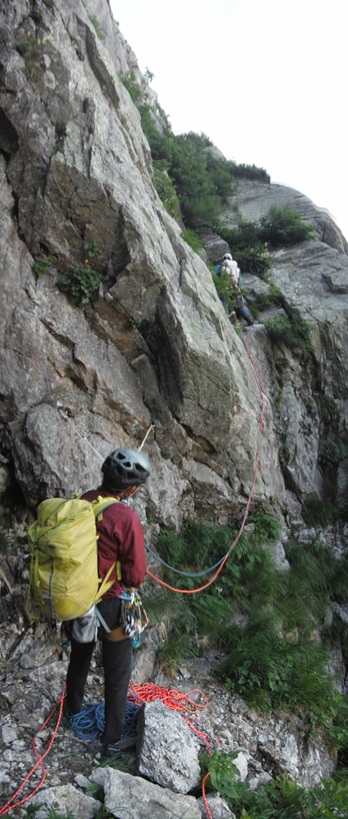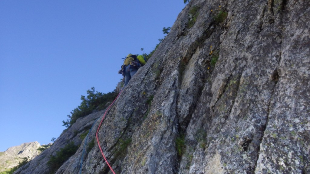 ・横断バンドは浮石の多いルンゼで水流もあったりするので落石させないよう滑り落ちないよう注意して登っていきました。