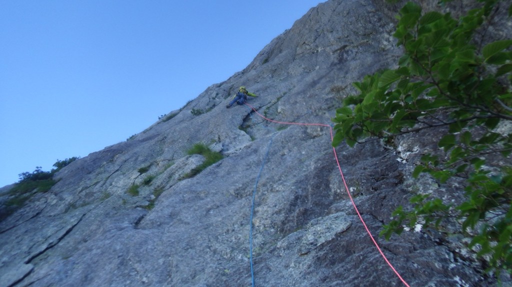 (山宮)アプローチの割にはあっと言う間に終わってしまった感じでした。あっけなかったです。2Pと3P目の終了点には1つ(今回は2~3Pを繋げて登っているので終了点として使ったのは3P目のもののみ。)、4Pの終了点には2つハンガーの終了点に変わっていて安心感がありました。核心の3P目(トポ4P目の5.10a)はトラバース地点でフォローでも落ちたくないとA0をしました。スメアの効くクライミングシューズならもっと大胆に登れたかもしれません。A0はその1回だけであとはフリーで登れました。全体の総括としてはどのパーティーも無事に、そして予定よりも早く下山できて良かったと思います。