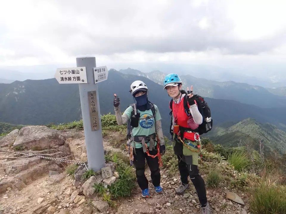 (進藤ま)今回は所属する山岳会の月例会で「土曜日にどこか沢でも行きませんか?」と山宮会長からのお誘いがあり、色々と候補を立て考えましたが最終的に大源太川北沢本谷に行くことに決定。ここは2018年7月に沢登りで行ったきりの7年ぶり。今回久しぶりに訪れるとやはり他の新潟の沢と同様に倒木が凄すぎて体力奪われました。2段25mだけ念の為ロープを出し山宮さんが随所にカムやナッツで支点を取り登攀しました。思い返すと7年前はロープ無しで登った気がする…今回はフォローだったので周りをよく見ながら登ると以前には無かったと思われるハーケンが何個か打たれていたのを発見しました♪今回の沢靴は北沢本谷へ行った方の記録を確認すると滑りが凄く何でもないところでも滑るとあったのでフェルトを選択…が失敗。フェルトでも滑るところは滑るし後半のスラブは微妙だったのでラバーにした方がよかったかもです。結局後半のスラブはアプローチシューズに履き替えて安心して登れました♪登山道に合流して山頂を目指しましたが近そうで遠く… やめれば良かったと思いましたが久しぶりに大源太山山頂を踏めたのは嬉しかったです。下山は結構急なので疲れました。今回は久しぶりに山宮会長や神蔵さんと、ご一緒できたし楽しい1日を過ごせました。ありがとうございました\(^o^)/