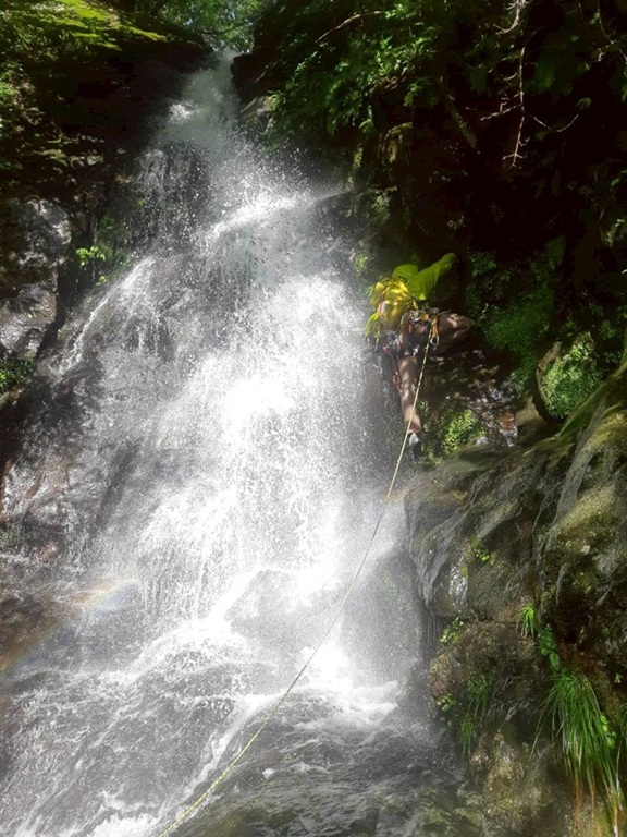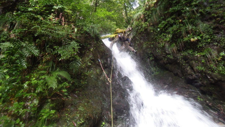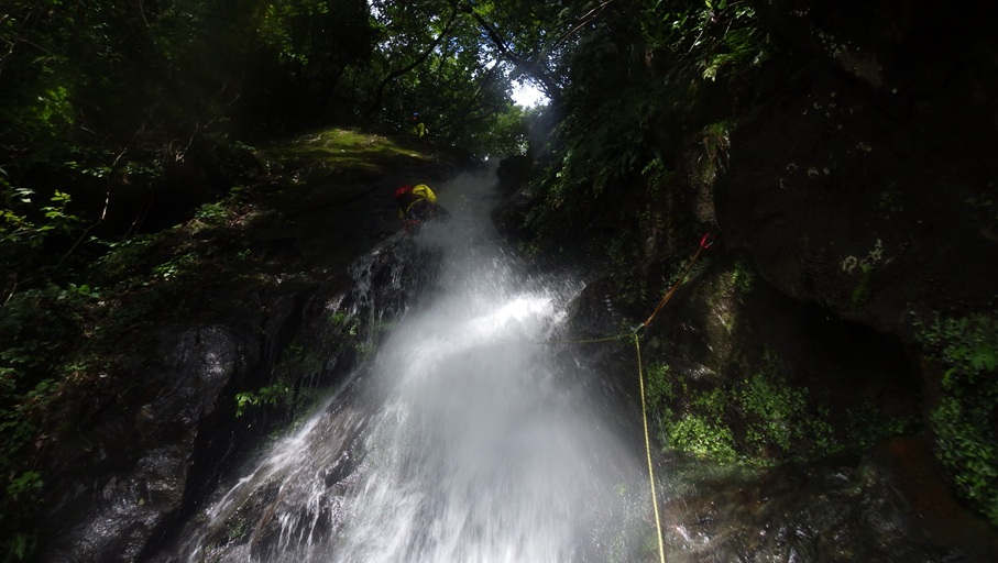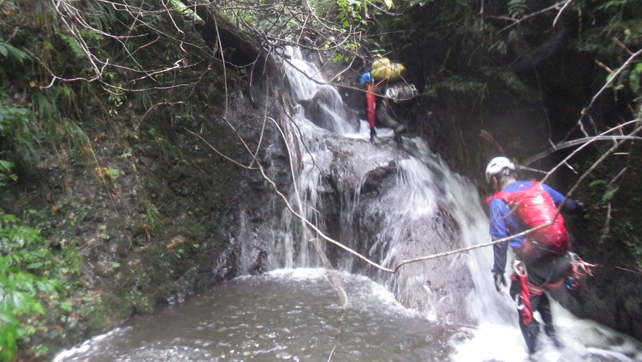 ・今回の一つ目の滝から大滝までの3つの滝は過去記録が参考にならないほどの水量でした。残置支点はわかりづらく、水線突破はなかなかシビアでした。