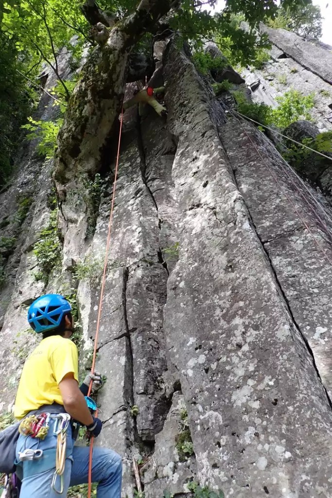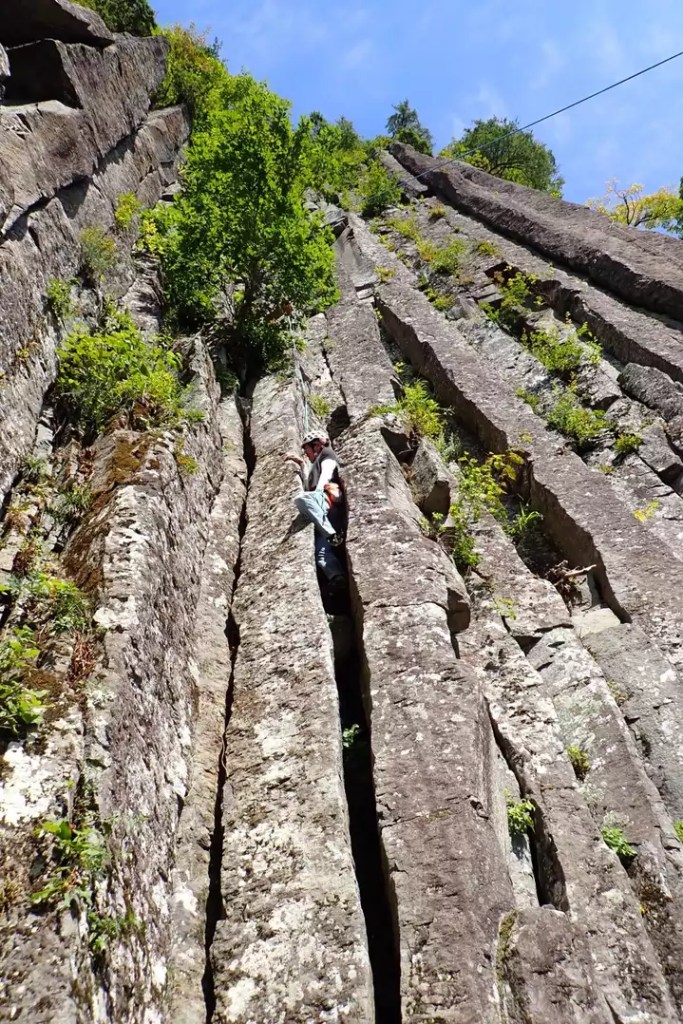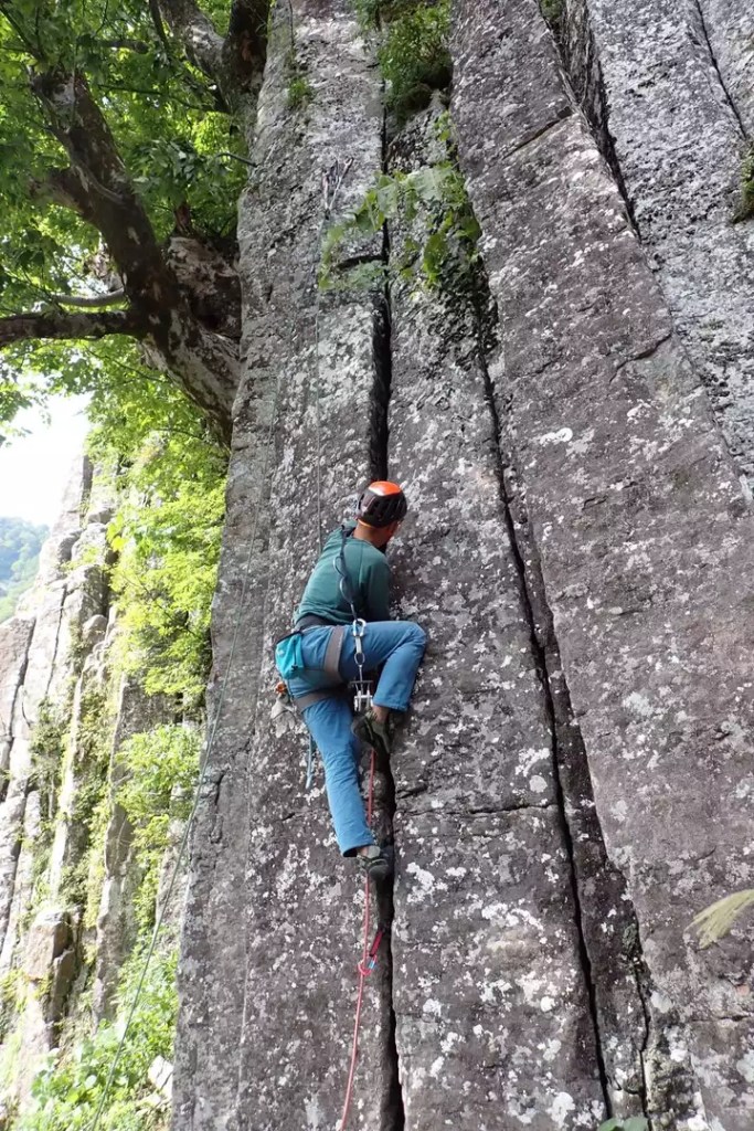 (岸畑)ワイドを積極的に練習しましたが難しかったです。クライミング以外の話ですが、別パーティーでスズメバチに刺されたかたがいました。誰も正しい処置の仕方をすぐに分からなかったので最低限のファーストエイドは学習しておく必要があるなと思いました。