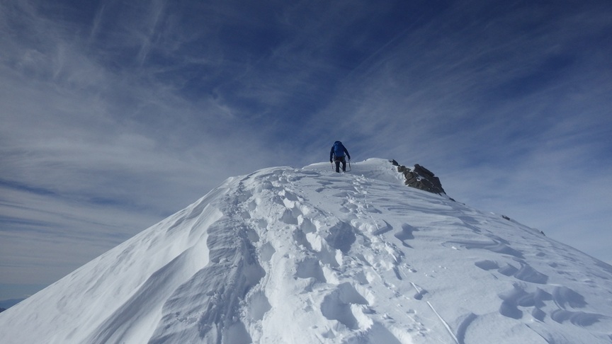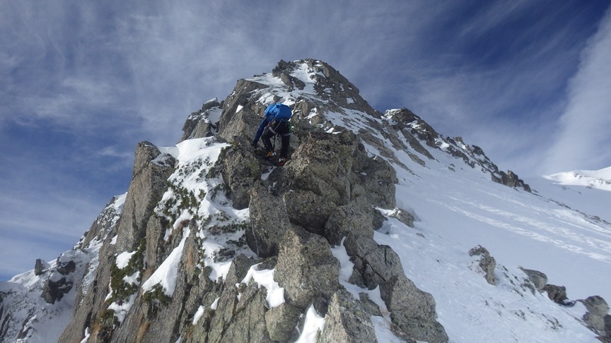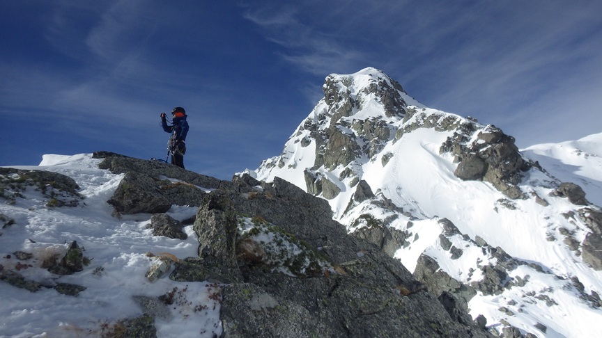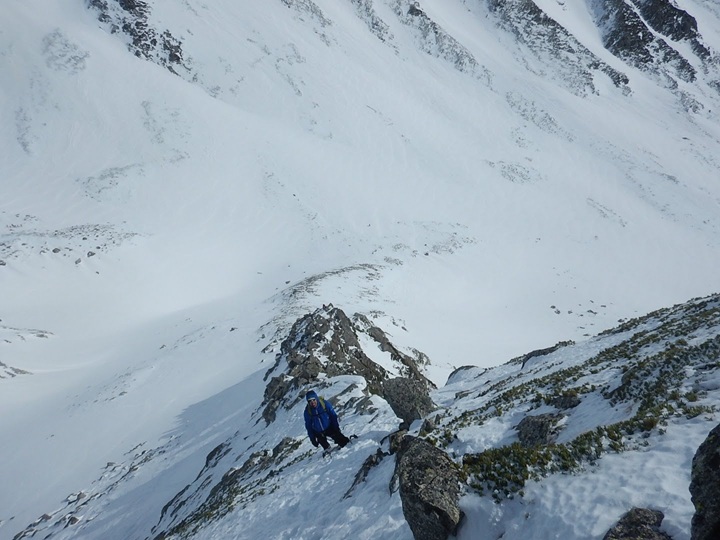 ・東尾根には数パーティーか取付いていました。上部にいたパーティーはかなり離れていたので追いつくことは無かったです。下部でロープを出して登っているパーティーがいたので側壁から追い越させてもらいフリーで登っていきました。(特に難しいところは無かったです。)