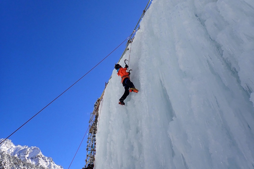 (中山)はじめてのアイスクライミングでした。アックスの刺さった感覚を掴むのがなかなか難しかったです。垂壁だとかなり難易度が変わることも実際に登って感じました。手だけで登っているとすぐにパンプアップしてしまうため、足が重要であること、