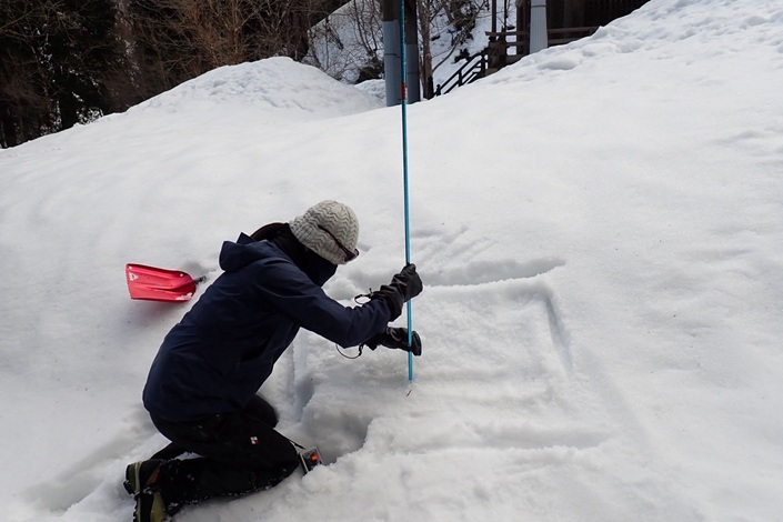 (神蔵)2日目のビーコン訓練に参加しました。去年よりはスムーズに動けて大まかでも流れが分かっているのといないのとでは違うなぁと実感しました。平坦で浅い場所は比較的探しやすくても斜度や深さがあるケースではヒットが難しく丁寧な作業が肝心であることを再認識。今回はいろいろなパターンでより実践的な練習ができたので良い訓練になりました。出題の為の巧みな雪掘りありがとうございました。定期的な訓練が実際の現場でのスピード=救命に繋がると思うので今後もこの企画には参加していきたいです。